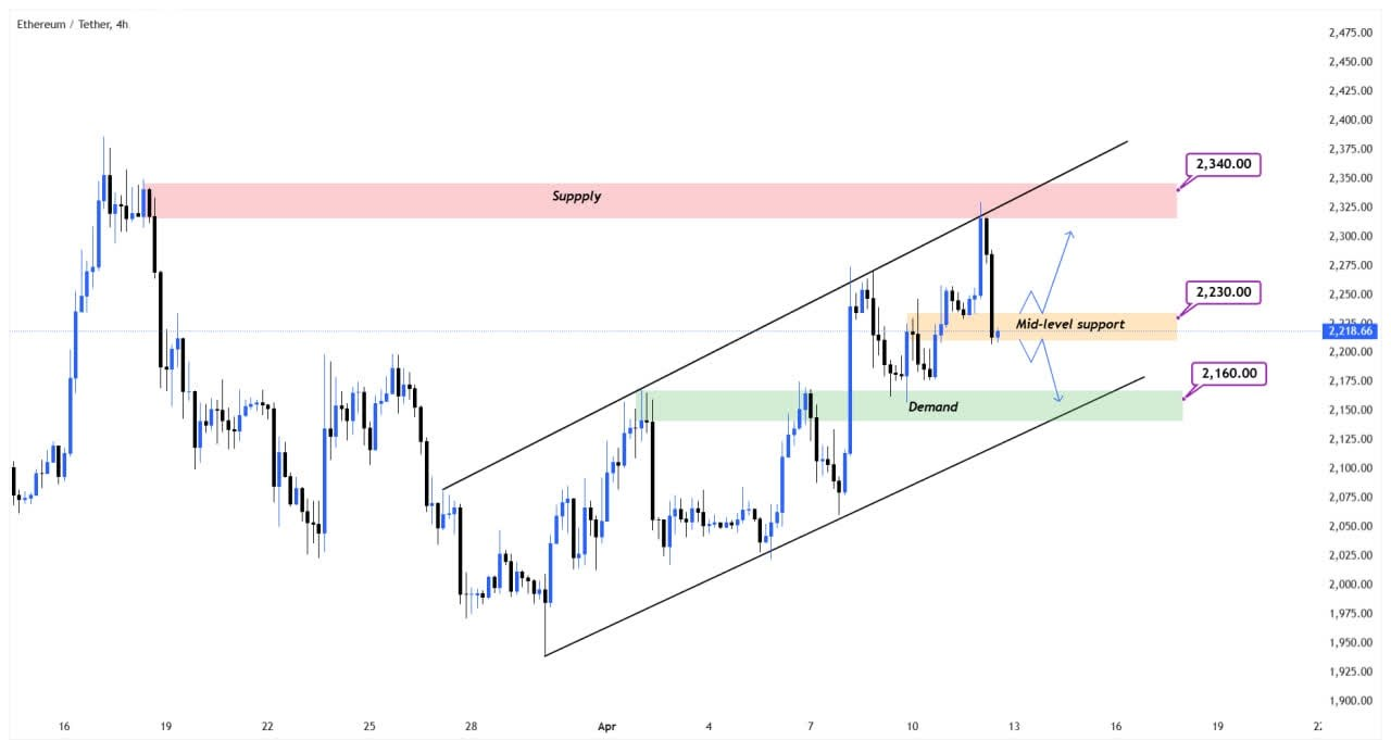 If price holds above it, the uptrend could continue, targeting $2,340 again. However, if this level breaks, Ethereum may drop toward the $2,160 demand zone near the lower channel.Overall, the trend remains bullish, but short-term direction depends on how price reacts at $2,230.